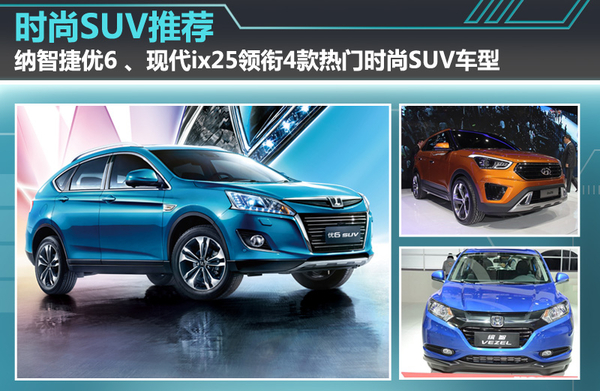 针对国内的紧凑型SUV的市场走向,更年轻、更时尚的车型,越来越受到大家的喜爱。各个厂家也在该市场的产品投放上,使出了浑身的解数,我们所熟知的2015款纳智捷优6 SUV ECO HYPER、现代ix25、广汽本田缤智和东风本田XR-V这四款车都是这支青年禁卫军中的的佼佼者。