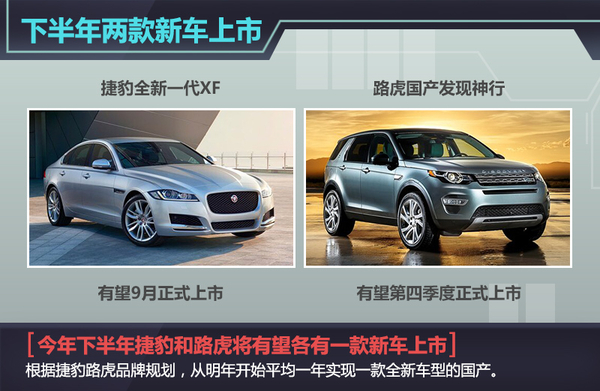 除了促销措施外,新产品的投放对于销量的增长也将起到积极作用。捷豹路虎在今年下半年还将向中国市场投放两款新车。首先是有望于9月正式上市的全新一代XF。该车是第二款基于捷豹iQ全铝车身平台打造的车型,得益于轻量化优势,新车整备质量比现款降低了190kg,而抗扭刚度则提升了28%。再有就是有望在今年第四季度上市的国产发现神行。该车是路虎品牌整合产品家族之后,发现家族推出的首款产品。目前发现神行在国内以进口形式销售,两款车型售价分别为55.8万元和61.80万元,在实现国产之后售价有望大幅降低。