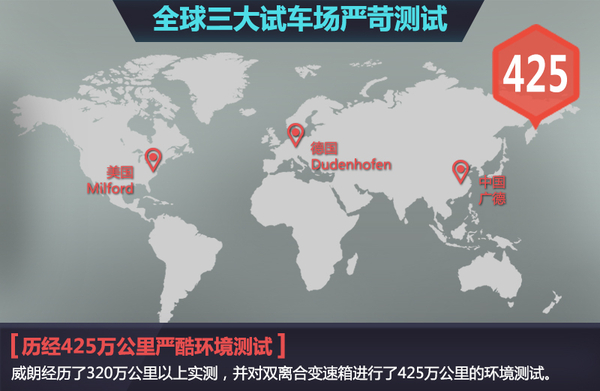 双离合变速箱有着换挡平顺、迅速且传动效率较高的特点。由于制造和维护成本较高,双离合变速箱的普及度尚不算高,但其所带来的优异燃油经济性与流畅的换挡感受不容忽视。威朗20T车型所采用的7速DCG双离合变速箱是由别克在美国本土的团队进行研发的。为了保证使用的稳定性和耐久性,别克威朗在研发过程经历了在全球三大试车场超过320万公里的实测,而这款变速箱更是进行了425万公里严酷环境测试,并根据中国用户习惯进行了优化。