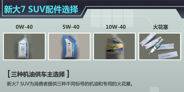 对于新大7 SUV的常规保养项目,网通社还进行了实际调查。在常见的液体、滤清器等保养项目中,该车所用的机油共有三款选择,标号分别为0W-40、5W-40、10W-40,每种机油的价格也不尽相同。新大7 SUV每次需加机油量为5L,需要加注机油1大(4L)1小(1L)两瓶,车辆每次更换成本为452元,虽然火花塞较贵,但由于其更换周期较长,实际更换成本并不高。