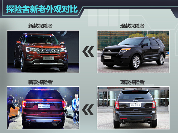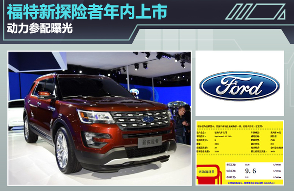 福特中大型SUV探险者现款车型于2013年在国内上市,搭载一款3.5L发动机,今年上海车展期间,福特发布了其改款产品,新车在外观设计、动力配备方面有所更新。福特汽车官方表示,新款探险者将于年内上市。近日网通社从工信部获悉,福特探险者将换搭2.3T和3.5T两款涡轮增压发动机,在动力性能方面将有所提升,2.3T车型百公里油耗相比现款小幅下降。新车上市后将继续与丰田普拉多等同级车型竞争。