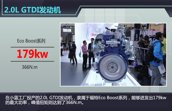 在小蓝工厂投产的2.0L GTDI发动机,隶属于福特Eco Boost系列,该系列产品是福特品牌最新研发成果。2.0L GTDI引擎能够迸发出179kw的最大功率,峰值扭矩则达到了366N.m,从发动机参数上来讲,与其他品牌2.0T引擎相比占有很大优势。同时,紧凑的发动机设计和燃油直喷技术则确保了该发动机具有不错的燃油经济性。