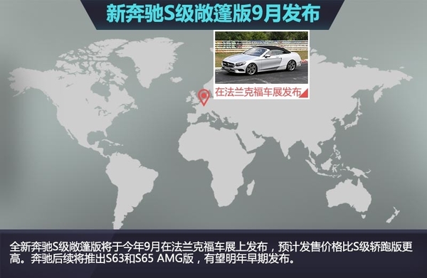 全新S级敞篷版的发动机配置与S级其他车型的配置相同,搭配V6、V8或V12双涡轮增压引擎,匹配7速自动变速箱。新车将于今年9月在法兰克福车展上面世,预计发售价格比S级轿跑版更高。奔驰后续将推出S63和S65 AMG版,预计明年早期发布。