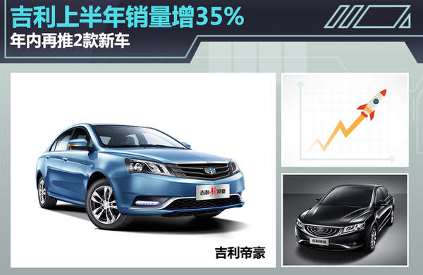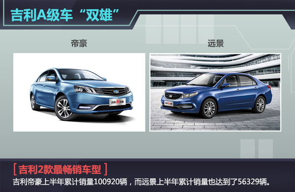 除了上述2款热销车型外,吉利GX7和博瑞也都取得了不错的表现:前者上半年销量达34774辆,同比增长17%;后者6月份销量达2750辆,按月增长约38%,成为目前自主品牌B级车销量最高的车型。