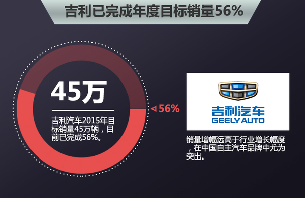 可以预见的是,伴随着新车型的陆续上市,吉利汽车的产品阵容将愈发完善,特别是全新SUV “NL-3”日后有机会提高吉利在SUV市场的竞争力,冲击56万辆的年度销量目标并不是遥不可及的事。(网通社2015年7月10日北京报道)