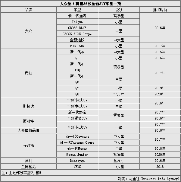 ƷδԤƽ6ȫSUVͽмͶš2016꣬һ;ۡTaigunСSUVCROSSBLUESUVCROSSBLUE CoupeͿSUVԼȫ;5³һƳ⣬POLOȫСSUVԤƻ2017Ƴ