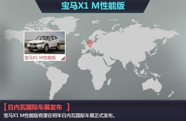 宝马M性能部门自1972年创立至今创造出一款款经典作品,包括现在售的M3、M4、M5、M6、X5 M以及X6 M性能版等多款车型给那些追求速度的车迷们带来了无限赛道速度刺激感。日前,网通社从海外媒体Leftlanenews获悉,宝马有望推X1 M性能版,新车有望在明年日内瓦国际车展正式发布,竞争对手瞄准了奥迪RS Q3以及奔驰GLA 45 AMG。