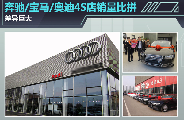 根据三家德系豪华品牌上半年在华的销量数据,可换算出单店平均销量。其中奥迪409家经销商贡献了超过27万辆的半年销量,单店平均销量达到670辆,一家奥迪4S店的比宝马、奔驰要多卖近1倍。此外,奥迪依托在华巨大的车型保有量所带来的售后服务利润,单店收益也会优于奔驰、宝马。