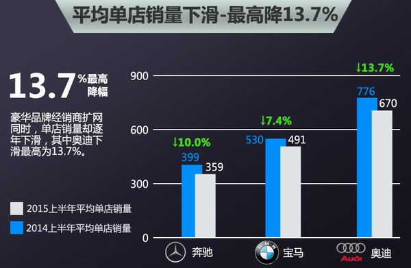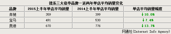 2015上半年奥迪单店平均销量超奔驰近1倍