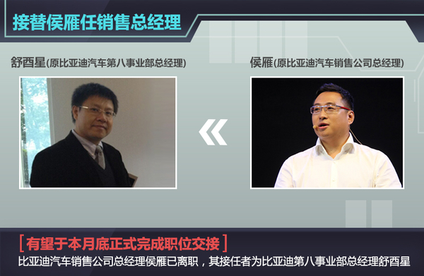 近日,“原比亚迪汽车第八事业部总经理舒酉星将接任离职的侯雁出任比亚迪汽车销售公司总经理一职”的消息在网络上不胫而走,网通社也专门就此事致电了比亚迪汽车,其内部人士虽然表示没有接到官方通知,但对于该事件并没有否认。由此来看,此消息应该不是空穴来风。据了解,这次人事调整最快将于本月底正式完成,届时舒酉星将会肩负起比亚迪汽车营销的任务。