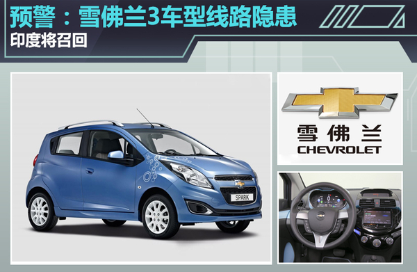 印度作为全球第二大人口国家,汽车市场潜力巨大,近日随着通用印度公司发布声明将调整领导层壮大领导队伍,雪佛兰将进一步扩大在印度投入,欲将其打造成全球第三大市场,目前雪佛兰在印度销售车型包括:斯帕可、Beat、赛欧、科鲁兹、Tavera、Enjoy等。近日网通社通过印度《经济时报》了解到,因部分车型的线路路障,通用印度公司将在印度召回斯帕可在内三款车型,涉及数量15.5万辆。