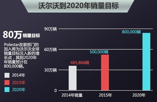 沃尔沃去年全球销量465,866辆,今年销量目标在500,000辆,Polestar高性能版的加入将为其销量目标注入新的增长点,其到2020年年销量预计在800,000辆。