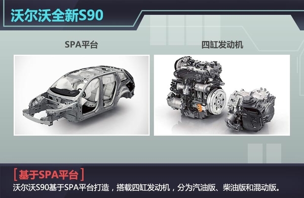 与全新XC90相同,沃尔沃全新S90基于SPA平台(可扩展整车平台架构)打造,搭载四缸涡轮增压发动机,有汽油版、柴油版和混动版供消费者选择。新车可能于今年年底或明年年初发布,并将于亮相后不久开售,预售价将略高于现款S80。