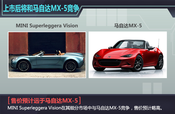 在敞篷跑车这个细分市场当中,MINI Superleggera的最直接对手就要数马自达的MX-5了,虽然从售价方面来说,MINI Superleggera预计将远高于马自达MX-5,但是基于将采用混动技术和秉承着MINI文化,其将会找到属于自己的目标购买人群,相信这个环保省油又“有范”的MINI敞篷跑会让不少人心动。(网通社2015年7月19日北京报道)