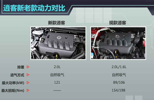 东风日产现款逍客目前采用的是1.6L和2.0L两款自然吸气发动机,型号分别为HR16DE、MR16DE。据工信部公布的信息显示,东风日产全新一代逍客将采用一款2.0L自然吸气发动机,最大输出功率为121kW,较现款车型有大幅提升。