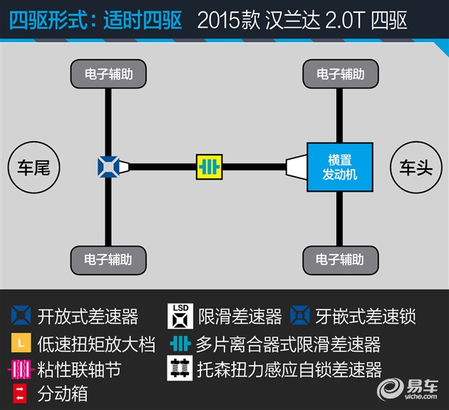 几个主要越野指标方面,汉兰达的车身钢性不错,还算结实;接近角离去角通过角也都凑合,进气口高度格外好;四驱系统强度一般,是城市SUV最常见的电控多片离合器中央差速锁;电子系统对轴间限滑帮助不大,有轮离地时基本就拜拜了,这点在视频中可以看的很清楚。总得来说,汉兰达通过性不错,涉水能力突出,综合越野能力一般。如果是我,我会选中高配2.0T前驱版本,然后每天高高兴兴上下班。在美国汉兰达销量最好的也是前驱,不过人家是3.5L前驱,国内没有这个选择。