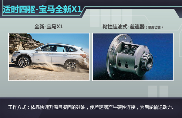 需要关注的是:由于宝马所搭载的xDrive系统并未配备中央差速器,因此这款四驱系统并非定义为传统意义上的全时四轮驱动,仅在前轮空转且失去附着力时,依靠快速升温且凝固的硅油,使黏性差速器产生硬性连接,从而连接前后桥,使前轴与后轴能够分别维持在最高50:50的动力分配。