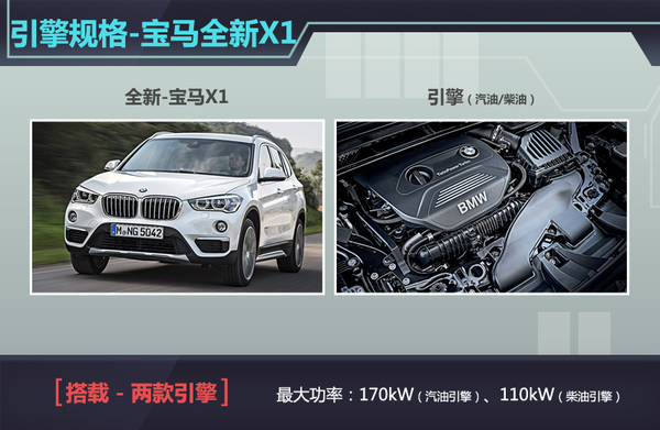 宝马作为一家生产运动型车款的品牌,旗下新车的动力核心则起着举足轻重的作用。宝马为全新X1配备了2款不同规格的动力总成,且分为汽油及柴油版本。其中汽油引擎的最大输出功率为170kW,而柴油引擎的最大功率则为110kW。并且在动力切割更为细致的8速自动变速箱匹配下,能够将动力经传动半轴及适时四驱系统输送到任意驱动轮,以保证动力的有效输出。