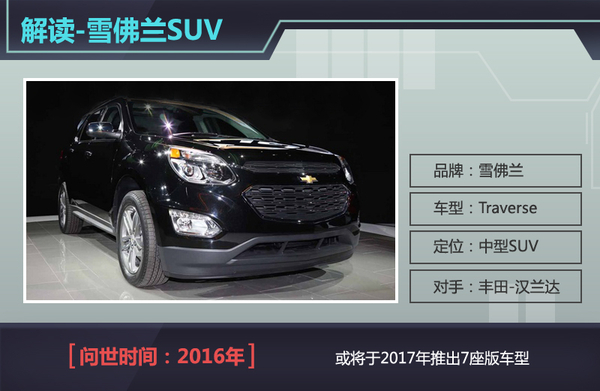 雪佛兰作为通用汽车旗下的子品牌,不仅推出了高性能美式肌肉车及经济型轿车,还致力于研发具有高通过性的SUV车型。日前网通社从美国媒体Leftlanenews获悉,雪佛兰将推出全新Traverse车型,新车定位于中型SUV,且配备三排座椅。凭借独特的外形设计及便利的实用性,新车将在2016年问世后与丰田全新一代汉兰达处于竞争关系。