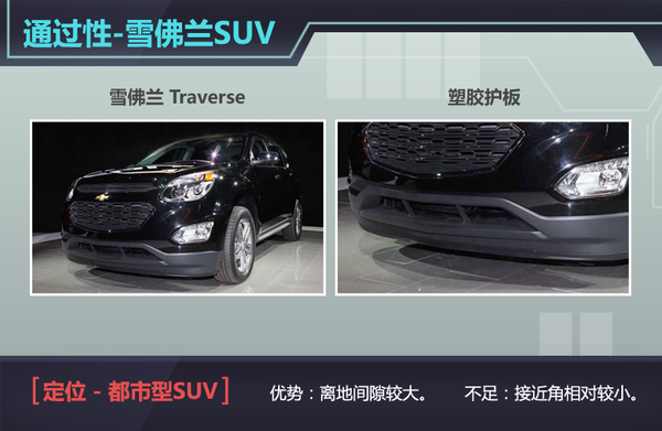 在外形方面,虽然雪佛兰Traverse在保险杠及侧裙位置设计有大面积未进行烤漆处理的塑胶护板,且具有足够可观的离地间隙,但新车在接近角角度方面却相对较小,因此这款全新Traverse则更多趋向于公路行驶,其搭载的四驱系统也仅应对于轻度越野的需求。