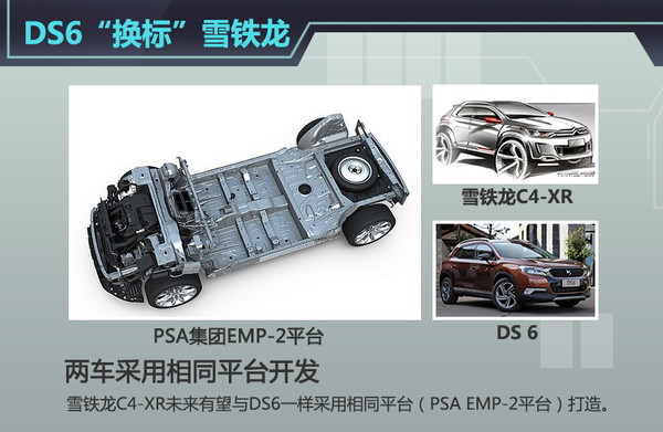 PSA集团正在全面布局SUV细分市场,在紧凑级SUV细分市场DS与标致品牌分布推出了DS6与3008车型,尽管雪铁龙品牌在华推出了首款SUV C3-XR,但是在紧凑级SUV领域还尚属空白。目前DS6已在华实现国产,该车正是采用了PSA集团的二号平台打造,在此之前DS一直是雪铁龙的子品牌,在重新整合PSA资源后,DS才成为雪铁龙独立的豪华品牌。因此DS6与未来将投产的C4-XR在零部件上实现了共通化,雪铁龙新车使用此平台也变得顺其自然。