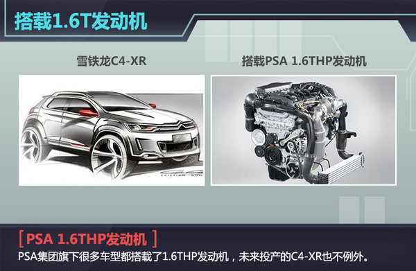 动力方面,东风雪铁龙C4-XR将搭载与DS6相同的1.6THP涡轮增压引擎,该发动机由标致雪铁龙集团和宝马共同研发,其采用直喷技术和单涡轮双涡道设计,最大功率120kW,峰值扭矩240Nm,传动方面与之匹配的则6速手自一体变速箱。(网通社2015年7月24日北京报道)