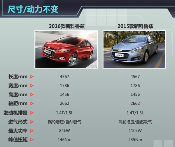 由于只是小改款车型,此次新推出的2016款新科鲁兹变化并不大,外观、动力以及尺寸均与老款相同。新车主要在配置上做了一些调整,在笔者看来售价不变的情况下升级多项配置,新款新科鲁兹还是比较有诚意的。(2015年7月24日北京报道)