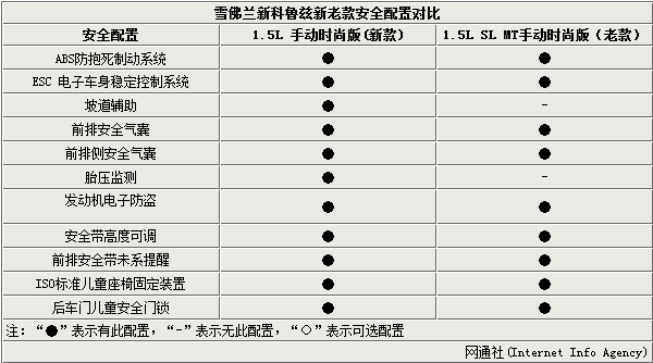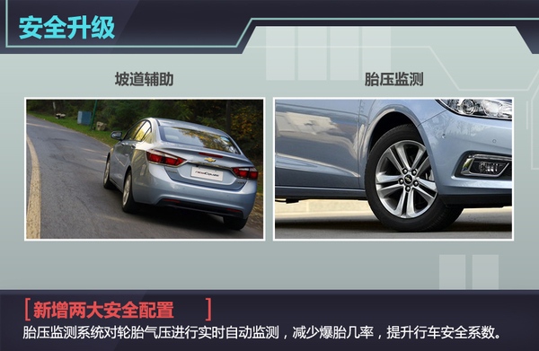 2016款新科鲁兹在发动机和车身尺寸上没有变化,主要的变化还是体现在配置上。为了让大家更直观的了解新车配置变化,小编选取了两款入门车1.5L手动时尚版和1.5L SL MT手动时尚版做对比。首先从安全配置上来看,1.5L手动时尚版新增了坡道辅助和胎压监测功能,这在同级别入门车中并不多见。胎压监测系统,能够在汽车行驶过程中对轮胎气压进行实时自动监测,并且对轮胎漏气和低气压进行报警,从而减小爆胎几率。