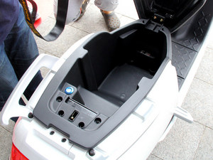 座椅下面的储物空间相对于电动车来说挺宽敞的,放个半盔、雨衣什么的绰绰有余。对于一个单身老男人来说,日常买菜足矣。此外,这个车竟然还有挂钩和USB充电口。李铁柱那样天天拿个手机玩什么“威信”总嚷着手机没电的家伙,肯定会羡慕的。