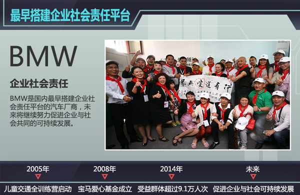 第一,我们在总公司有专门负责企业社会责任的相关部门以及相关的人来制定战略,这个战略在全球推行,他们负责协调。到了中国,我们的企业社会责任是由政府事务部来牵头,由宝马中国和华晨宝马两个公关部门同时推行和实施。宝马投入了大量的人力和物力,可以看到公司对企业社会责任的高度重视。在宝马中国下面有一个爱心基金的团队,他们专门负责管理爱心基金,对它的项目进行推行和执行。我们的公益项目有总公司的、有本地的,还有区域的以及我们爱心车主来执行的一些项目,能够看到这是一个全方位的战略。