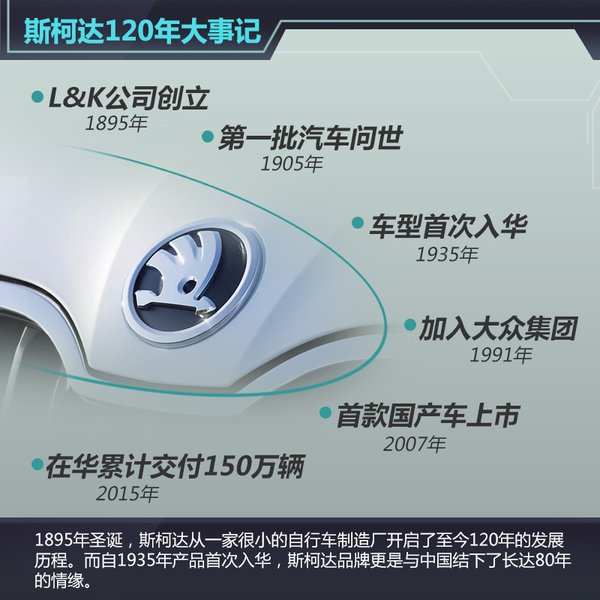 斯柯达汽车自1895年从自行车制造起家,至今已走过了漫长而周折的120年。正是这120年的积淀,让起源于波西米亚的斯柯达汽车成为了世界上历史最悠久的4个汽车品牌之一。在这长达120年的历史长河当中,斯柯达虽然经历了战火与收购,但它从中收获了重生与辉煌。在120岁“生日”到来之际,网通社对斯柯达品牌历史大事记进行了盘点。这其中,斯柯达与中国长达80年的“情缘”让人印象深刻,而该品牌徽标的百年衍变则令人充满好奇。
