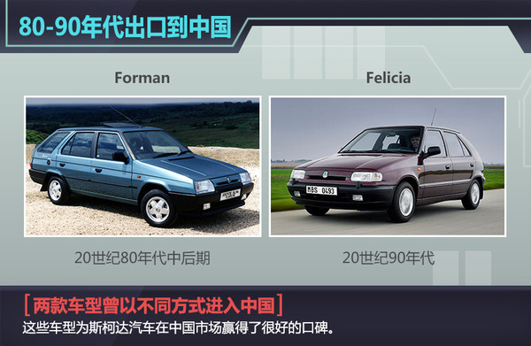 Felicia作为继Favorit之后斯柯达品牌的第二款前置前驱轿车,是斯科达汽车文化与大众汽车技术相融合的第一个成功案例。该车采用了两款来自大众的发动机,其中一款1.6L汽油发动机最大功率达到了55kW。凭借Felicia,斯柯达在1998年获得了JD Power“最佳制造商”的殊荣。截止到2001年停产,斯柯达Felicia在全球销售了141.7万辆。更值得一提的是,该车曾在20世纪90年代进入中国市场。在此之前,中国还曾于20世纪80年代中后期通过易货交易进口量15,000辆斯柯达Forman。这些车型为斯柯达汽车在中国市场赢得了很好的口碑。