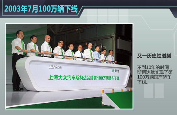 2013年是斯柯达汽车在华实现本土化生产的第七个年头,在这一年的7月该品牌迎来了又一历史性的时刻,那就是在中国累计生产的第100万辆汽车正式下线。仅6年的时间,斯柯达品牌在华本土化生产就累计达到了100万辆,这体现了该品牌在华发展的快速。