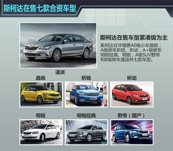 时至今日,斯柯达品牌已有了120年的发展历程。从1935年首次将车型出口到中国,斯柯达与中国的“情缘”也已延续了长达80年。目前斯柯达品牌在华投放的产品共计10款,其中7款都为国产车型。在轿车领域,斯柯达以晶锐、昕锐、昕动、明锐经典、明锐、进口明锐旅行版以及速派和进口速尊,实现了A0级到B级市场的覆盖;在SUV领域,该品牌还投放了野帝和进口野帝两款A级SUV。