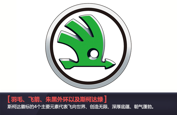 深厚底蕴:斯柯达汽车标志以朱黑的外环围绕,象征着斯柯达由百余年汽车历史浓缩的浓厚的汽车文化底蕴。