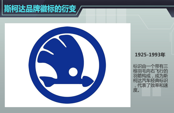 1925—1993:“飞翔之箭”首次问世。标识的环形图案由一个带有三根羽毛的向右飞行的羽箭构成,正是这个简单且容易辨认的羽箭,成为斯柯达汽车的经典标识,成为了效率和速度的象征。