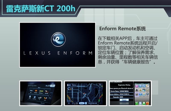新车搭载了雷克萨斯2016款车型才会配备的Enform Remote和Enform Service Connect远程控制系统,为车主提供了诸多便利。在下载相关APP后,车主可通过Enform Remote系统远程开启/锁定车门、启动发动机和空调、定位车辆位置。借助Enform Service Connect系统,车主能了解保养需求、剩余油量、里程数等相关车辆信息,并获得“车辆健康报告”。