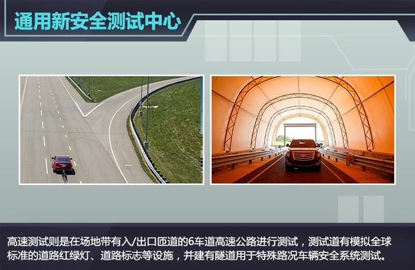 高速测试则是在场地带有入/出口匝道的6车道高速公路进行测试,测试道上还建有模拟全球标准的道路红绿灯、道路标志等设施,并建有隧道用于特殊路况下车辆安全系统的测试。