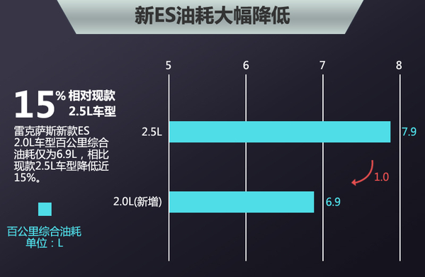 在燃油经济性方面,雷克萨斯新ES 2.0L车型由于发动机排量降低以及缸内直喷技术的应用,百公里综合油耗仅为6.9L,相对现款2.5L车型降低了15%,大大缩减了用车成本。值得一提的是,该数值与现款ES 2.5L混动车型百公里综合油耗仅为5.4L的数据,都令人期待。这样的油耗成绩在同级别车型中非常具有竞争力。