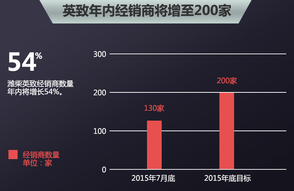 充足的经销商数量对于提振销量和为用户提供完善的售后服务至关重要,在这方面,潍柴英致将基于产销平衡及渠道承载能力等多方面考虑,稳步扩充经销商数量。据潍柴(重庆)汽车有限公司副总经理谢凤高介绍,目前潍柴英致已有130多家一级经销商,今年年底将扩充至200家,达到车企所需经销商数量的“正常”规模。这意味着英致经销商数量年内增长将超过5成,可助力品牌向市场发起更强劲的冲击。(网通社2015年7月29日北京报道)