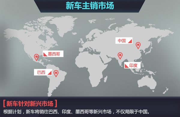 虽然通用新一轮规划主要面向中国市场,但是并不仅仅局限在中国。计划显示,未来该项目的新车还将销往巴西、印度、墨西哥等新兴市场。通用汽车总裁Dan Ammann表示:通过这一努力,通用汽车公司希望利用其规模性来超越竞争对手,预计在未来15年内推动全球汽车销售的增长。(网通社2015年7月29日北京报道)