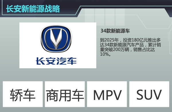 在长安未来的新能源发展战略中,投资180亿元,以2015年为起点直至2025年规划向市场投放新能源车型达34款,其中以纯电动为主旋律一并发展插电式混合动力。对于未来新能源车型的销量,长安方面预计到2025年新能源车型销量突破200万辆。2015年和2016年仅仅是长安新能源宏图的开始,今年仅有一款逸动EV上市,2016年和2017年长安将再各推一款全新电动车。