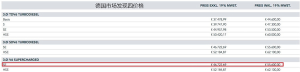 问:我对比过德国市场的XC90和路虎发现四,那里是它们的客场,也是豪华车比重最大的市场。我看到,235千瓦的汽油版XC90 T6税后起价是5.77万欧元,比250千瓦的发现四3.0V6 SE的起价(5.56万欧元)还要高出2100欧元。这是怎么回事?