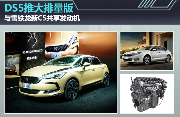 长安PSA在今年的北京车展期间,正式发布了新款DS5车型,车辆最大的变化就是采用了全新前脸设计,同时在动力上也会有变化。近日,网通社从网通社从国家环境保护部获得新款DS5的信息,新车将推出比现款DS5的1.6T发动机动力更大的1.8T发动机车型,在低油耗的前提下提升动力。值得一提的是,今年下半年将上市的雪铁龙新C5也将使用这款发动机。