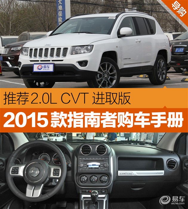 2015款Jeep指南者于今年3月份正式上市,售价区间与老款保持一致,具体为22.19万-28.09万元。仅是针对部分细节进行了优化。新车增加了“琥珀绿标准漆”颜色来替换原有的深棕色,并针对部分车型将镀铬亮色行李架更换为粉末喷涂银行李架。经过我们筛选推荐2.0L CVT进取版车型。