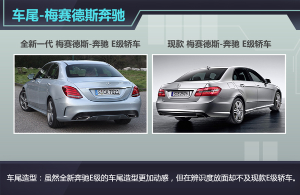 全新一代奔驰E级轿车不仅舍弃了四圆式的头灯设计,在尾灯方面也换搭了与奔驰C级和S级相同设计思路的配置。其LED光源的尾灯虽然在辨识度方面能够使路人清晰辨认出这款全新E级是由梅赛德斯奔驰所打造,但与C级与S级“同质化”的设计思路则使其缺少了E级车型的独特风格。(网通社2015年7月31日北京报道)