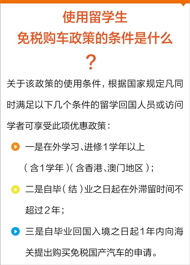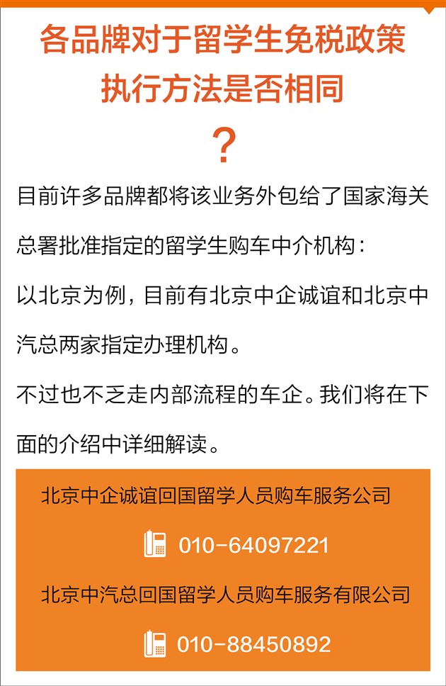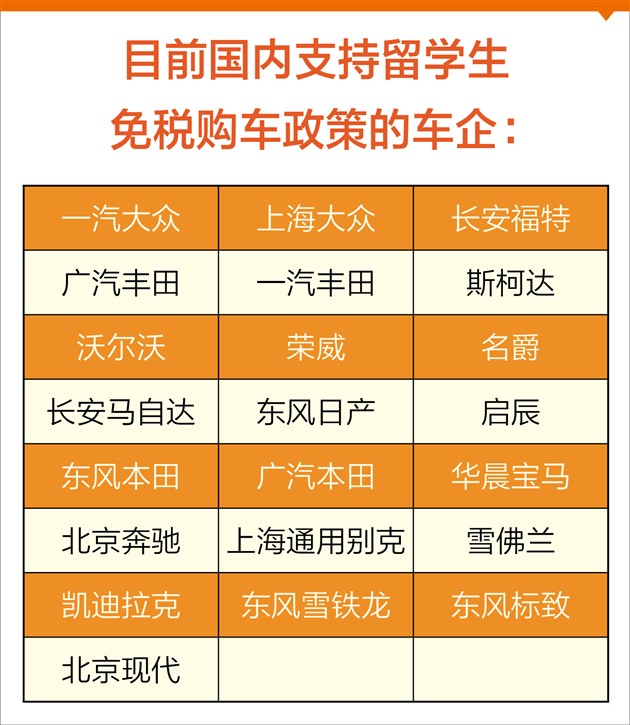 注:目前回国留学生只能购买自主以及合资等国产车型,进口车型不支持免税政策。