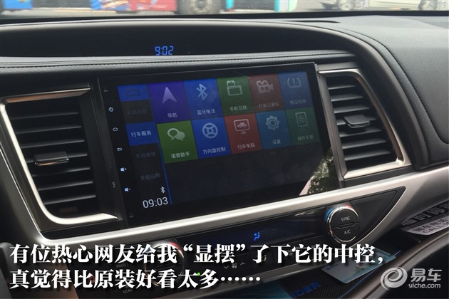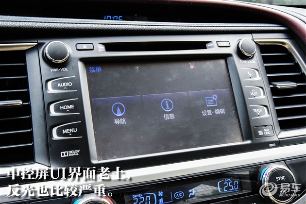 丰田似乎一直对“科技感”不感冒,新汉兰达亦然。中控屏幕功能齐全但界面UI有点倒胃口,遭遇强光也很难看清。分布于屏幕两边的触摸按键与旋钮也比较老气,很难跟得上外观的洋气。