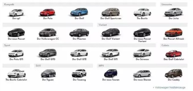 那么哪一点才是构成神车的决定性因素?在我看来很可能是泛用性。如果一款车能自己或者靠变种胜任通常消费者的各种需求,那么它就能在天时地利时成为一款神车。这样说可能有点不直观,不过你看了大众德国官网的车型列表你可能会发现,大众其实是个以卖高尔夫为主要业务的公司。