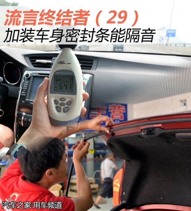 我们采用分贝仪做测试,将分别对匀速60km/h、80km/h和120km/h进行测试,看看在安装密封条前后的数据到底是多少。